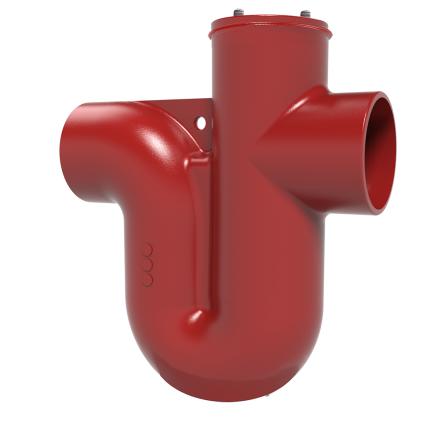 Les siphons de parcours de la gamme SMU S sont des composants en fonte qui permettent la conservation d’une garde d’eau évitant la remontée des odeurs. Une flèche est présente sur le corps de la pièce indiquant le sens d’écoulement. Ces raccords sont revêtus d'un film époxydique brun-rouge déposé par cataphorèse renforcée.