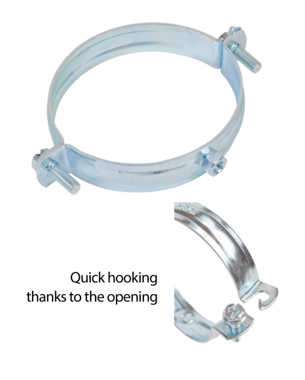 Le collier de descente maintient les canalisations posées verticalement sur les murs. Les colliers DN75, DN100 et DN125 sont également adaptés pour la fixation des descentes pluviales de la gamme "Résidentielle".